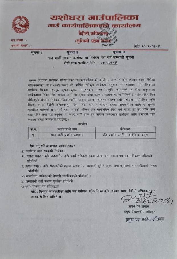 यशाेधरा गाउँपालिकाकाे बेवसाइटमा स्वागत छ