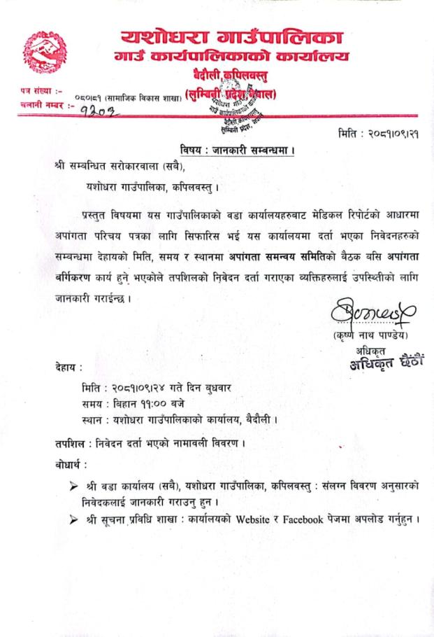 यशाेधरा गाउँपालिकाकाे बेवसाइटमा स्वागत छ