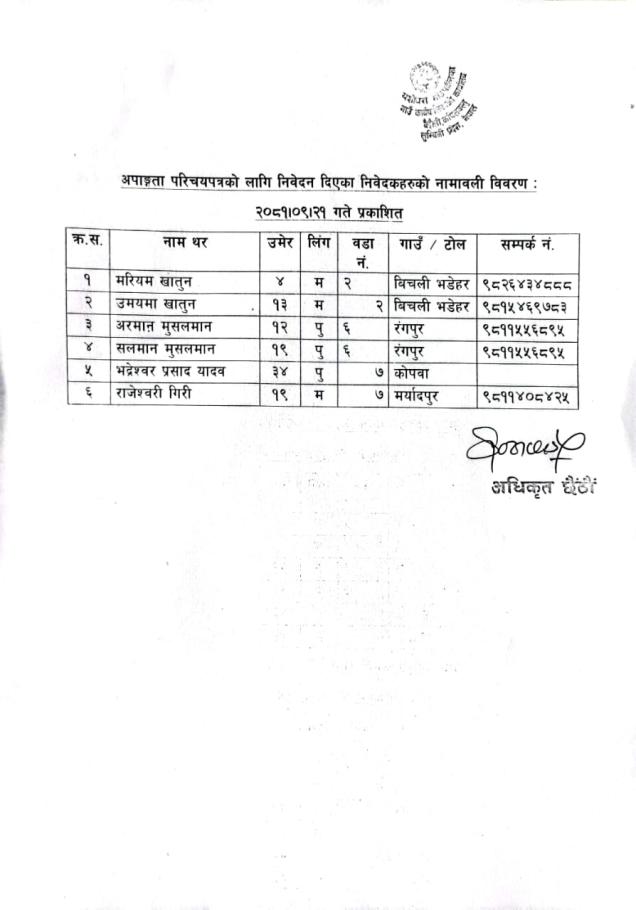 जानकारी सम्बन्धमा ।