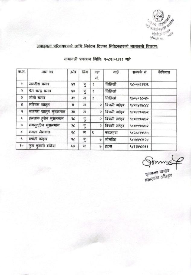 जानकारी सम्बन्धमा ।