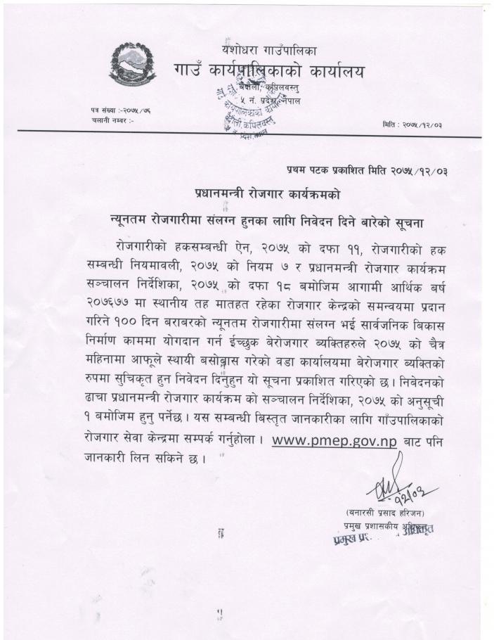 न्यूनतम राेजगारीमा संलग्न हुनका लागि निवेदन दिने सम्बन्धमा