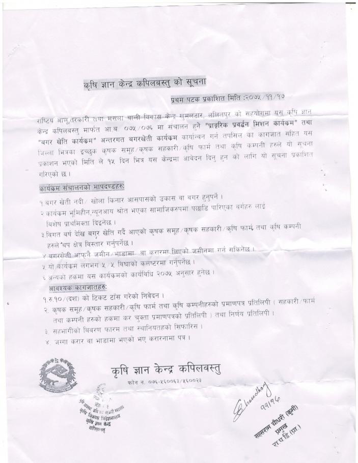 बगर खेति कार्यक्रम सम्बन्धि सुचना