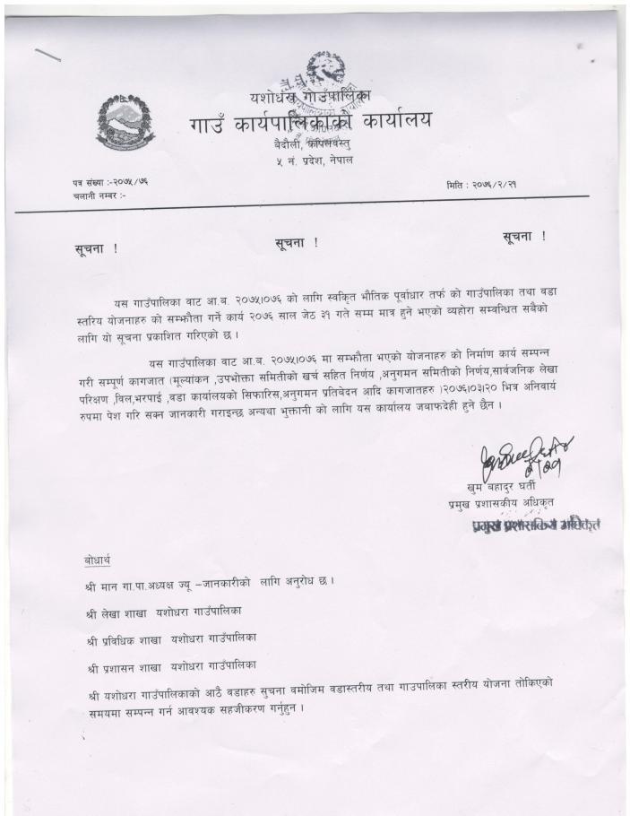 यशाेधरा गाउँपालिकाकाे बेवसाइटमा स्वागत छ