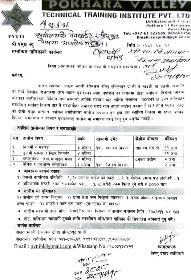 सीपमुलक तालिममा सहभागी हुन निवेदन पेश गर्ने सम्बन्धमा ।