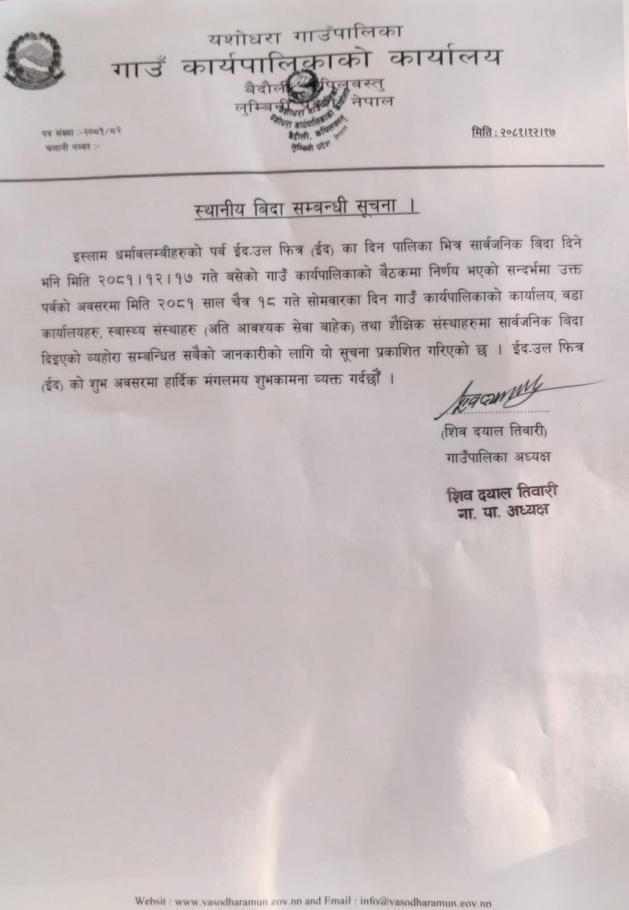 यशाेधरा गाउँपालिकाकाे बेवसाइटमा स्वागत छ
