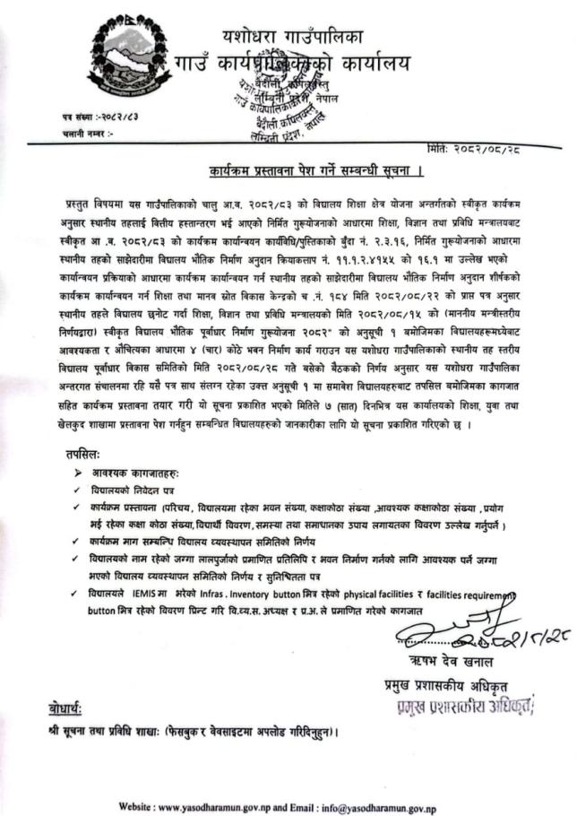 यशाेधरा गाउँपालिकाकाे बेवसाइटमा स्वागत छ