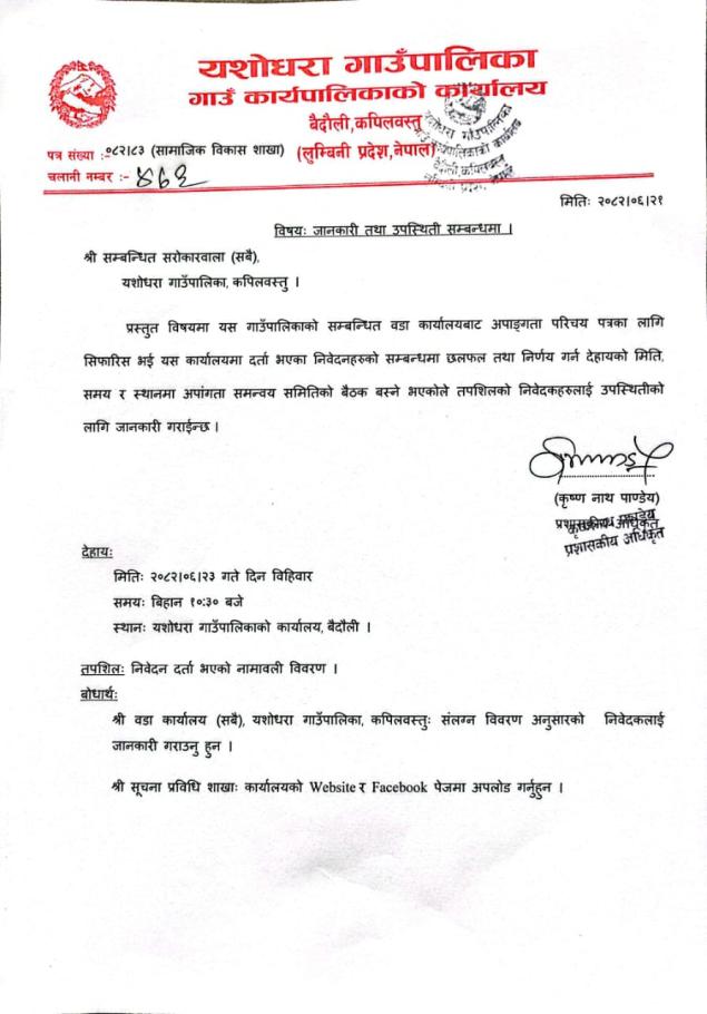 यशाेधरा गाउँपालिकाकाे बेवसाइटमा स्वागत छ