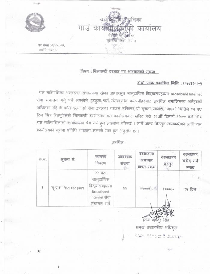 दोस्रो पटक शिलवन्दी दरभाउपत्र आह्वानको सूचना ।