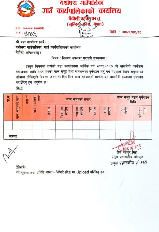 यशाेधरा गाउँपालिकाकाे बेवसाइटमा स्वागत छ