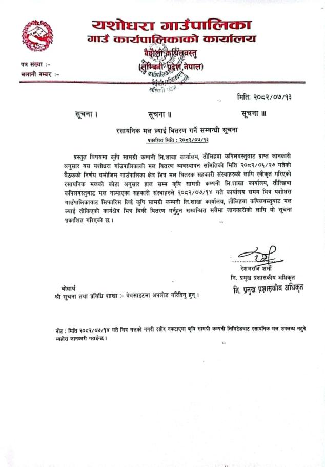 यशाेधरा गाउँपालिकाकाे बेवसाइटमा स्वागत छ